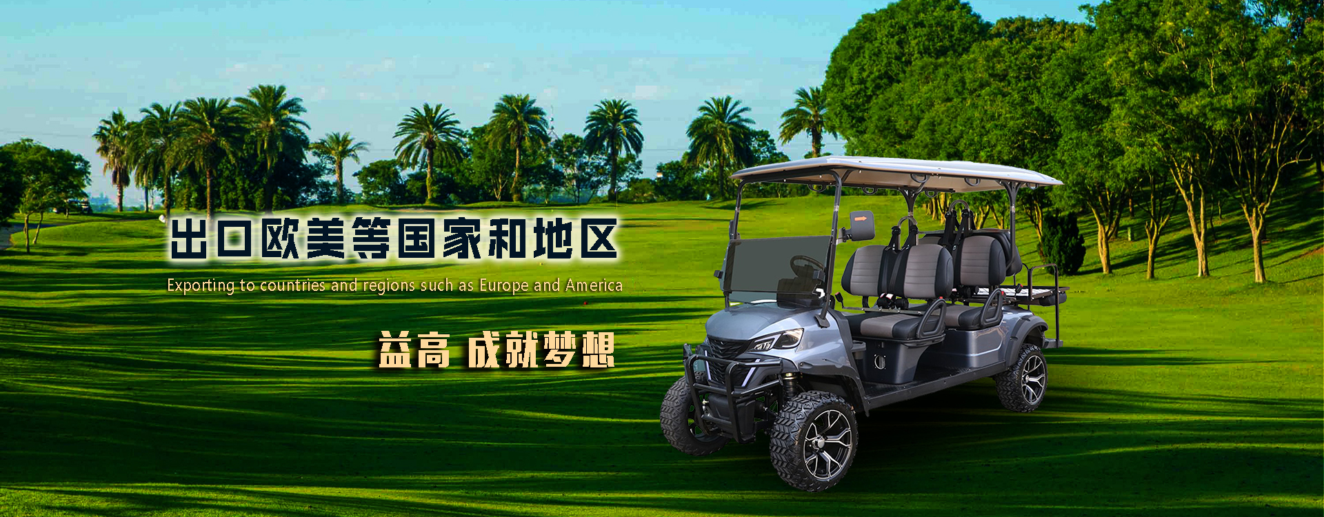 福建益高電動車銷售有限公司是益高電動車旗下銷售分公司,益高電動車公司成立于1998年,系中港合資企業(yè),益高廠房面積35000㎡, 現(xiàn)有員工1590余人,是從事非公路用純電動車研發(fā)和生產(chǎn)較早的企業(yè),現(xiàn)有產(chǎn)品電動觀光車、 高爾夫車、貨車、牽引車、高空作業(yè)車等多種電動車輛,已銷往國內(nèi)各大省市,并出口到國外:美國、新加坡、越南、泰國、緬甸、加拿大、阿聯(lián)酋、 新西蘭、意大利、瑞典、西班牙、韓國、菲律賓、南非、澳大利亞、丹麥、日本、沙特和法國等104個國家, 曾為巴西足球杯、上海世博會等重大賽事提供服務(wù)。